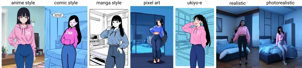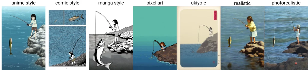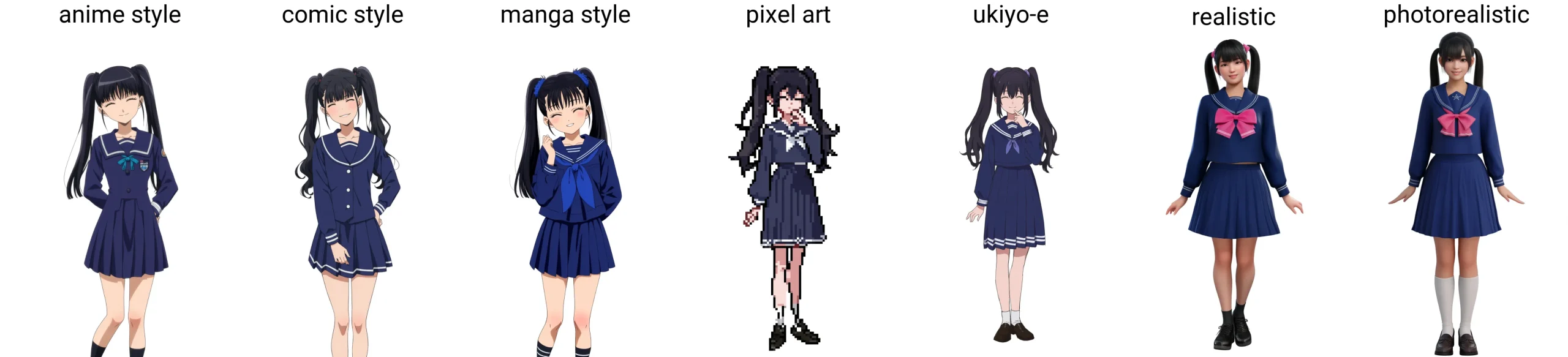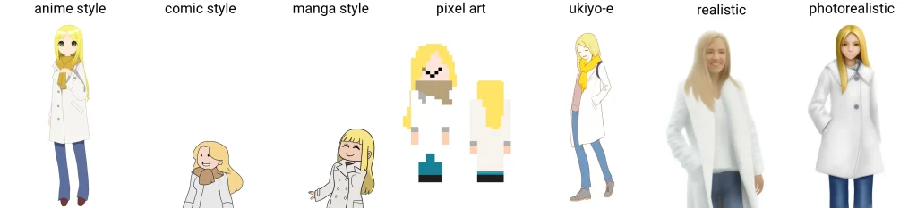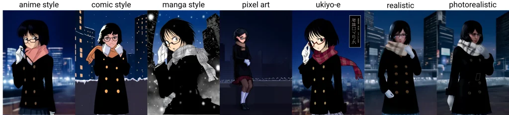 “anime style”が一番アニメ絵っぽいでしょうか。