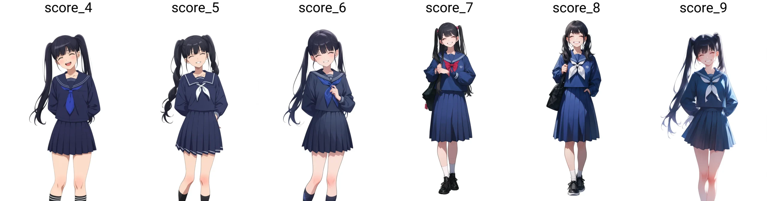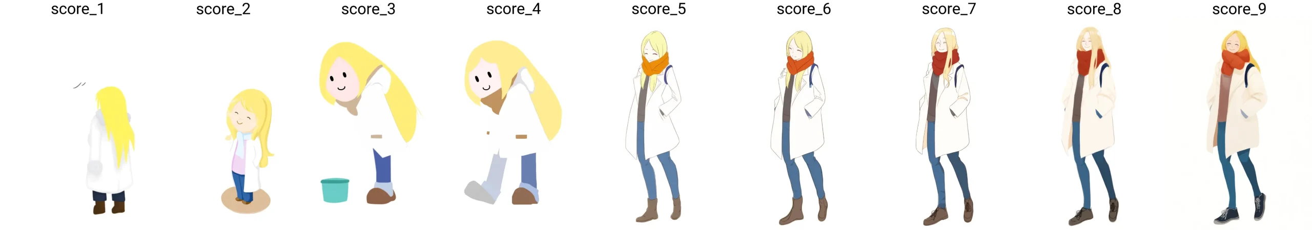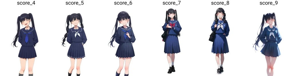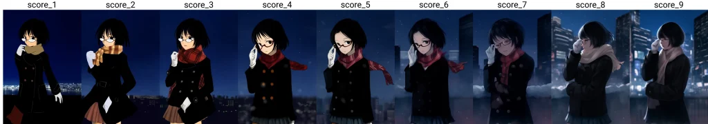 次はpony系モデルで使われているクオリティタグ”score”系タグです。
