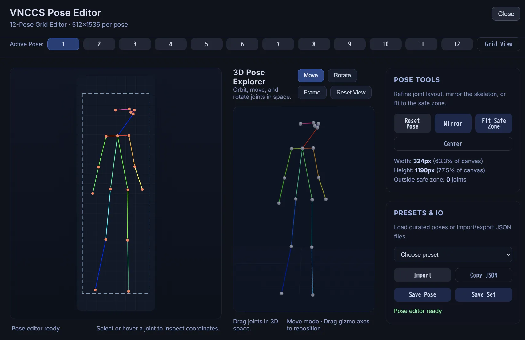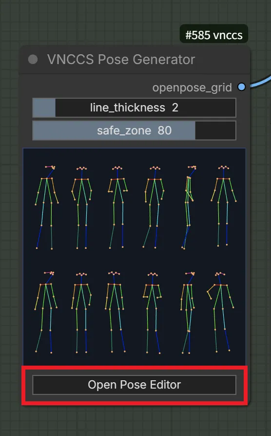 生成されるポーズを変更するには、「VNCCS Pose Generator」ノードの棒人間のポーズを変更します。