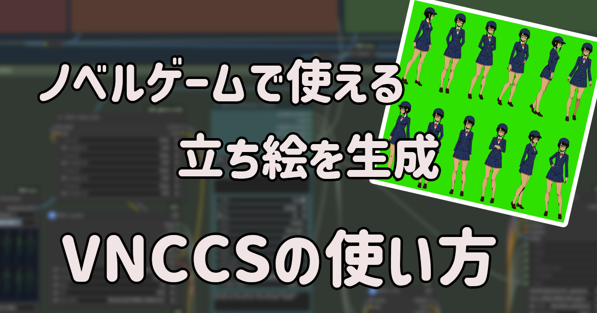 VNCCSはノベルゲームなど、立ち絵を必要としているクリエイターにはとても有用なカスタムノードなので、覚えておいて損はないでしょう。