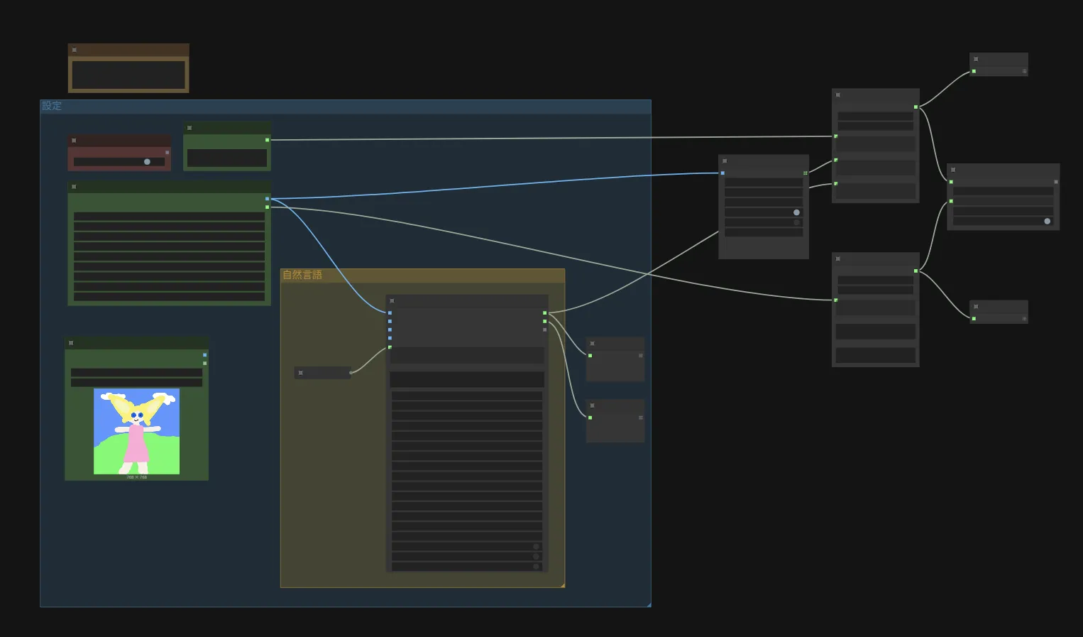 数値を変更するノードは基本的に「設定」グループにあるノードだけです。